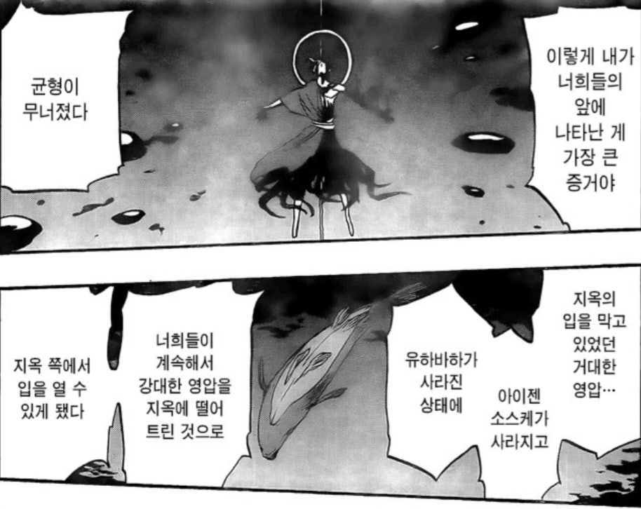 옥이명명에서도 지옥 문을 막은 강대한 영압으로 유하바하랑 아이젠이 같이 묶였고