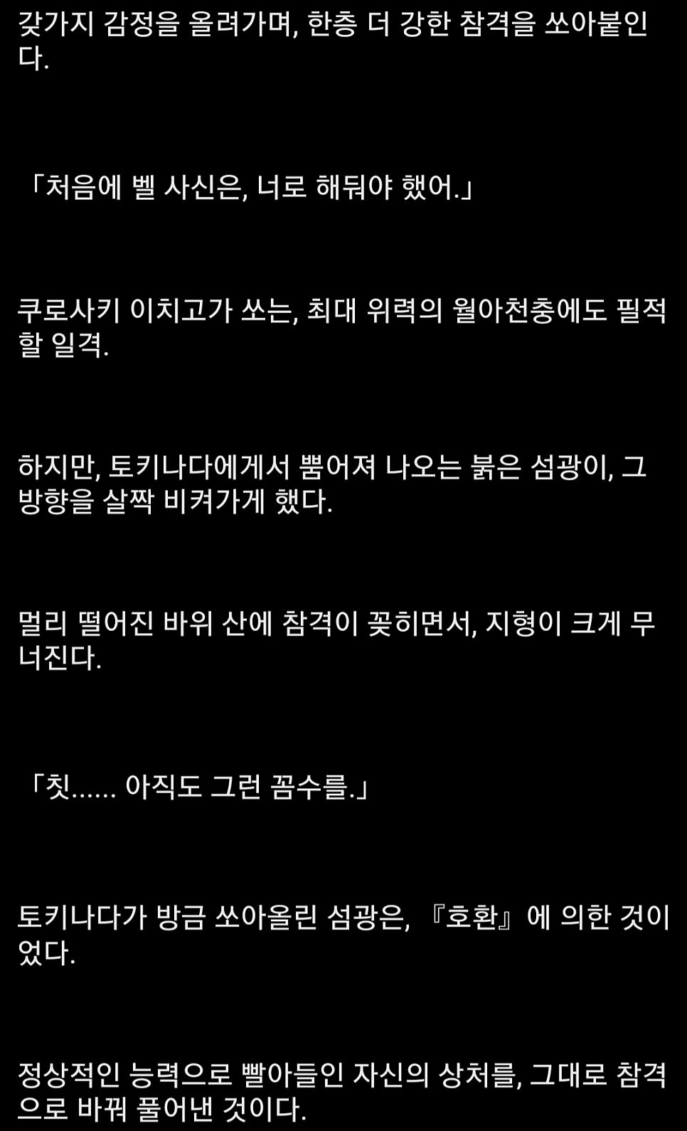 | "이치고가 쏘는, 최대 위력의 월아천충에도 필적할 일격." |