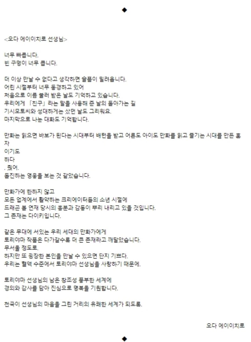 타작가들 추모 코멘트